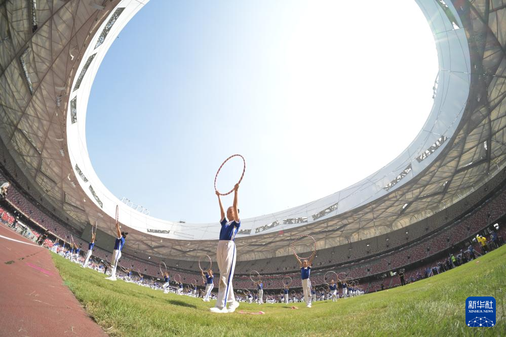 9月9日,在国家体育场,学生进行体育展示。新华社记者 陈晔华 摄