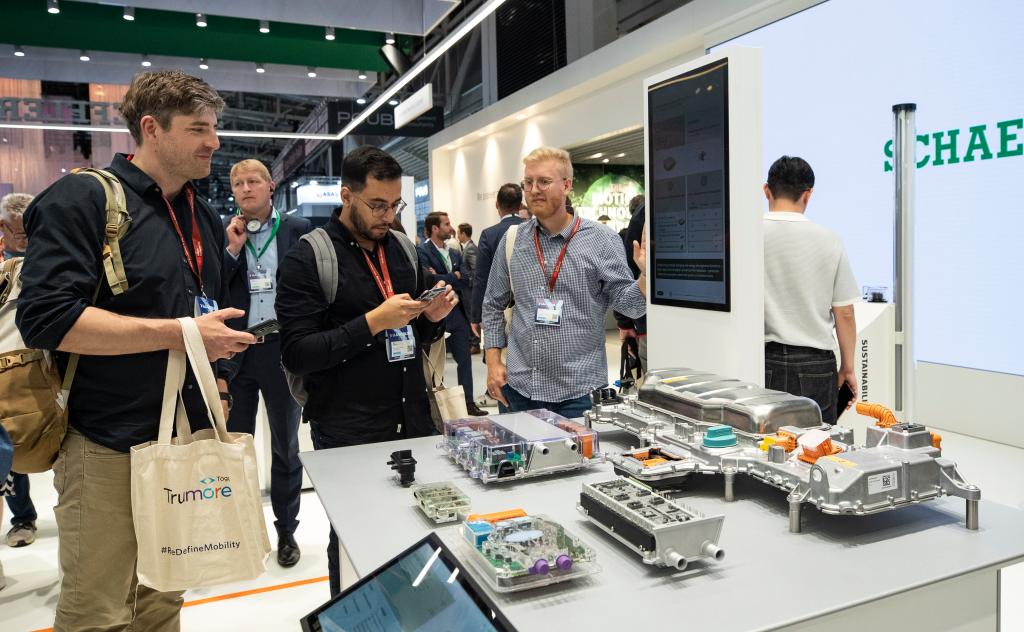 9月9日,人们在德国慕尼黑国际车展的采埃孚展台参观。