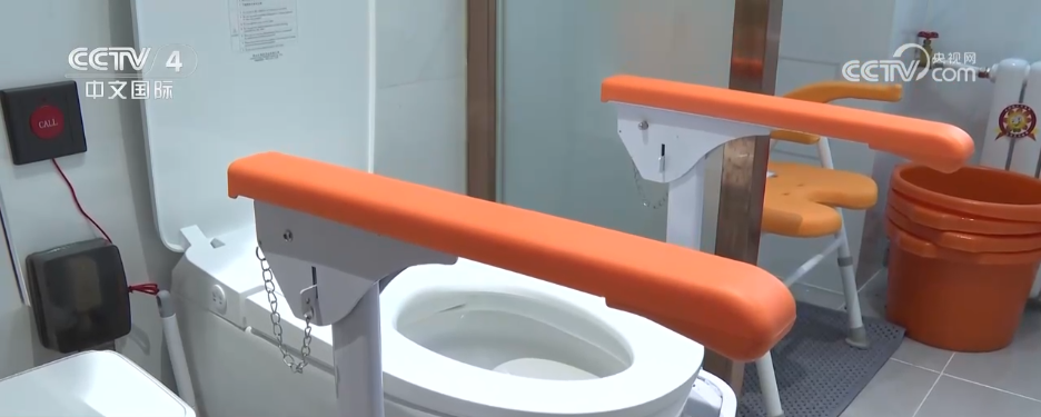 走进上海徐汇区的这家居家适老化改造样板间,这里就像是家的感觉。带大家看一下老年人咨询最多的卫生间,可以看到卫生间扶手握上去很有安全感,同时这里有一个淋浴椅,老年人就可以坐着淋浴。