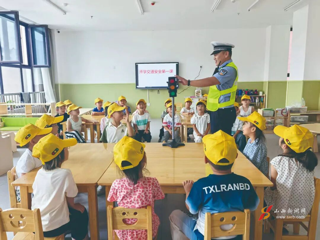 为进一步增强幼儿交通安全意识,大同市公安局交管支队交管八大队民警走进辖区幼儿园,开展了一场别开生面的交通安全启蒙教育。活动中,民警先为小朋友们逐一送上小黄帽,并通过播放交通安全动画、现场互动问答等形式,用浅显易懂的语言讲解安全过马路、识别交通信号灯等基础知识,让孩子们在欢声笑语中掌握必要的交通安全技能。