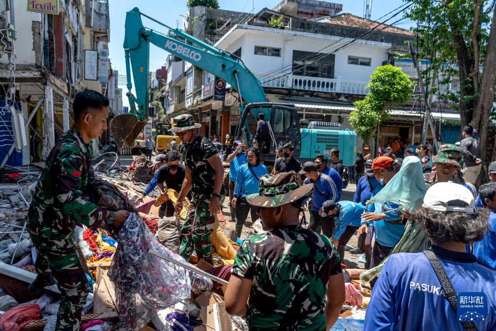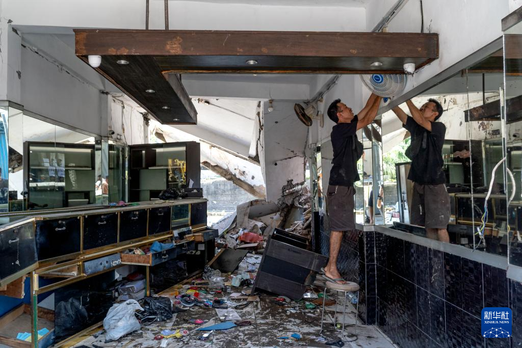 9月11日,在印度尼西亚巴厘岛登巴萨,一名男子检查店铺受损情况。