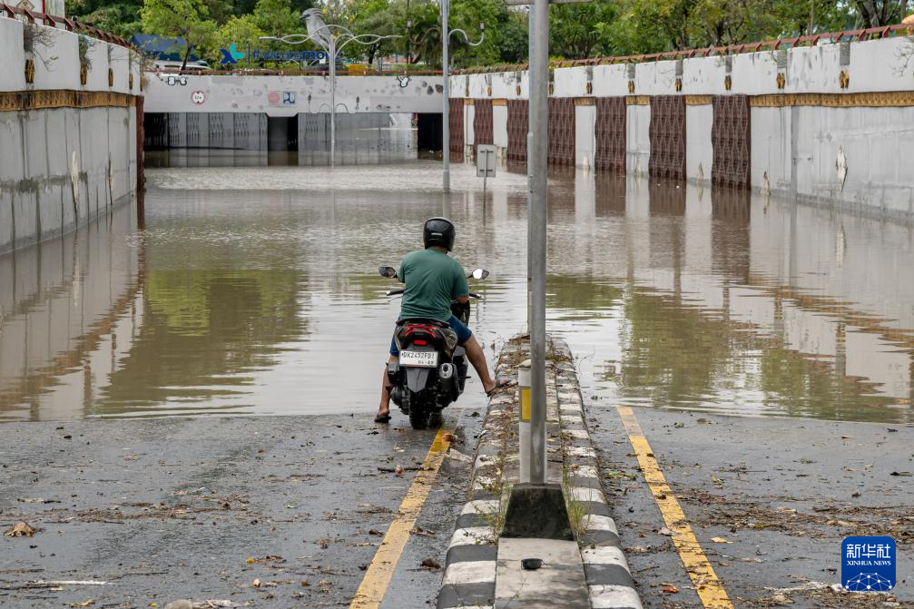 9月10日,在印度尼西亚巴厘岛库塔,道路被洪水淹没。