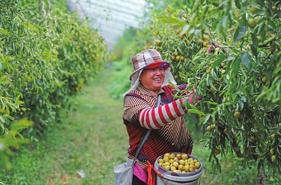 9月10日,襄汾县邓庄镇席村冬枣种植基地内,种植户正在开展采收作业。近年来,邓庄镇大力发展特色农业种植产业,通过实施科学化种植和水肥一体化管理,使冬枣的产量、质量、规模得到显著提升。