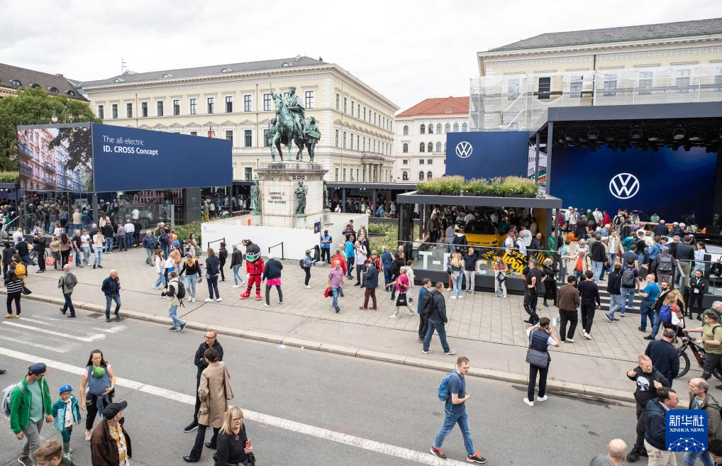 9月11日,在德国慕尼黑,人们在慕尼黑国际车展户外展区大众展区参观。