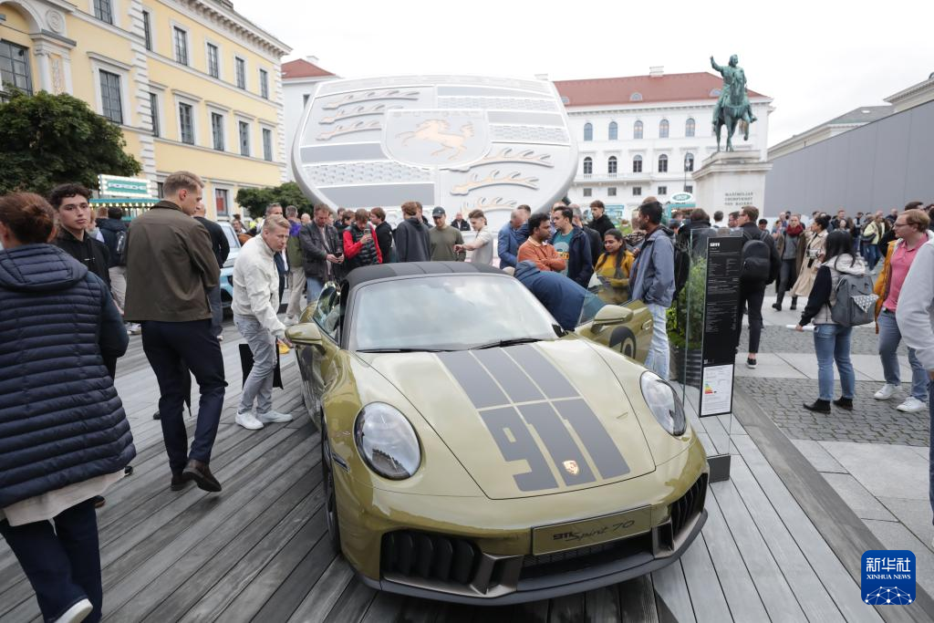 9月9日,在德国慕尼黑,人们在慕尼黑国际车展户外展区保时捷展区参观。