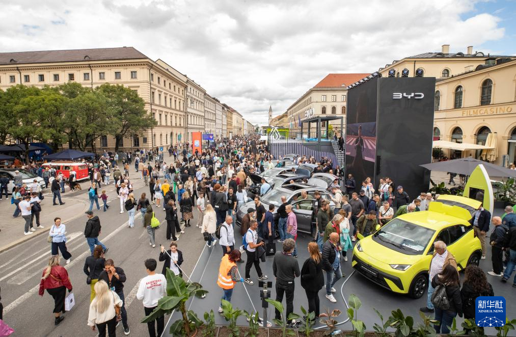 9月11日,在德国慕尼黑,人们在慕尼黑国际车展户外展区比亚迪展区参观。