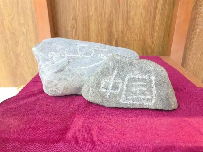 布茹玛汗·毛勒朵刻下的“中国石”。 胡嘉琛 摄