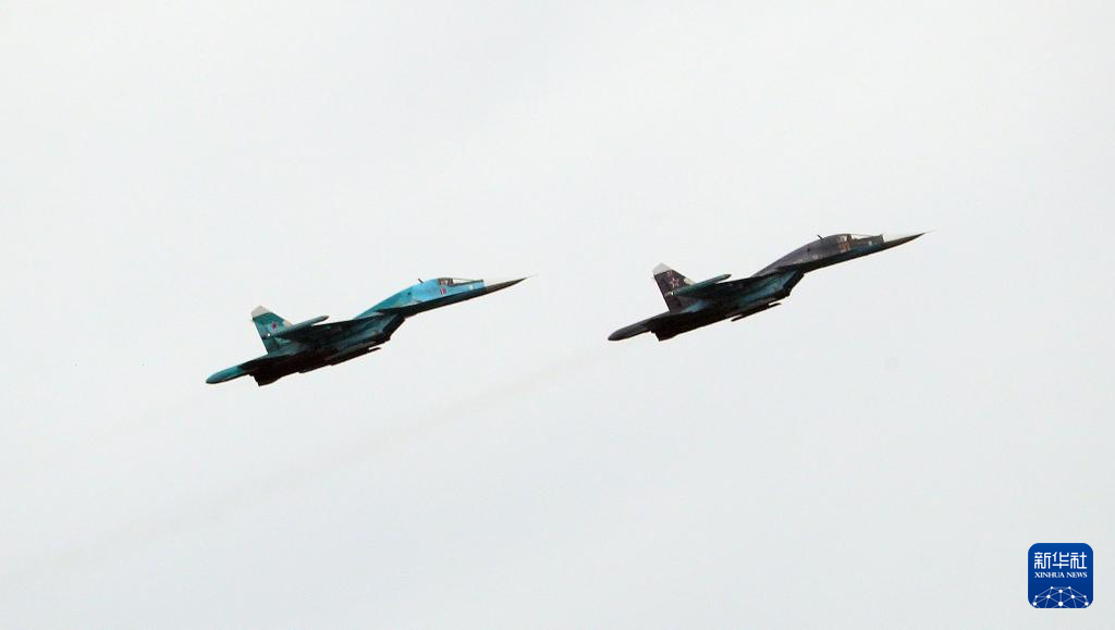 这是9月15日在白俄罗斯明斯克州拍摄的俄白“西部-2025”联合战略演习现场的战机。