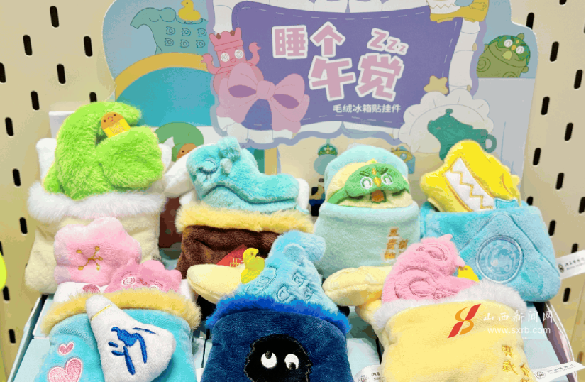 除“睡个午觉”系列外,山西博物院“逛吃逛吃”毛绒挂件、“檐之•有物”古建筑毛绒玩具、其乐“绒绒”噗噗捏捏乐毛绒挂件、“卣”点意思毛绒笔记本,以及暑期爆款文创发饰等新品,造型生动、实用美观,以“轻量化”形态让观众近距离感受山西历史文化魅力。