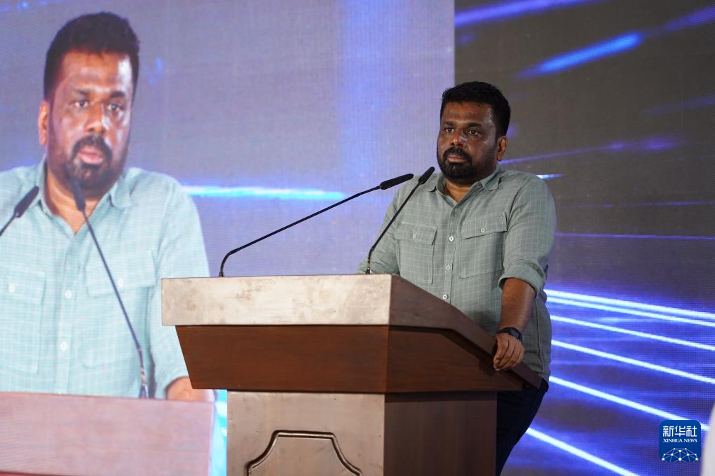9月17日,斯里兰卡总统迪萨纳亚克在科伦坡出席中国中冶承建的斯里兰卡中部高速公路第一标段项目复工复产仪式并致辞。新华社记者 陈冬书 摄