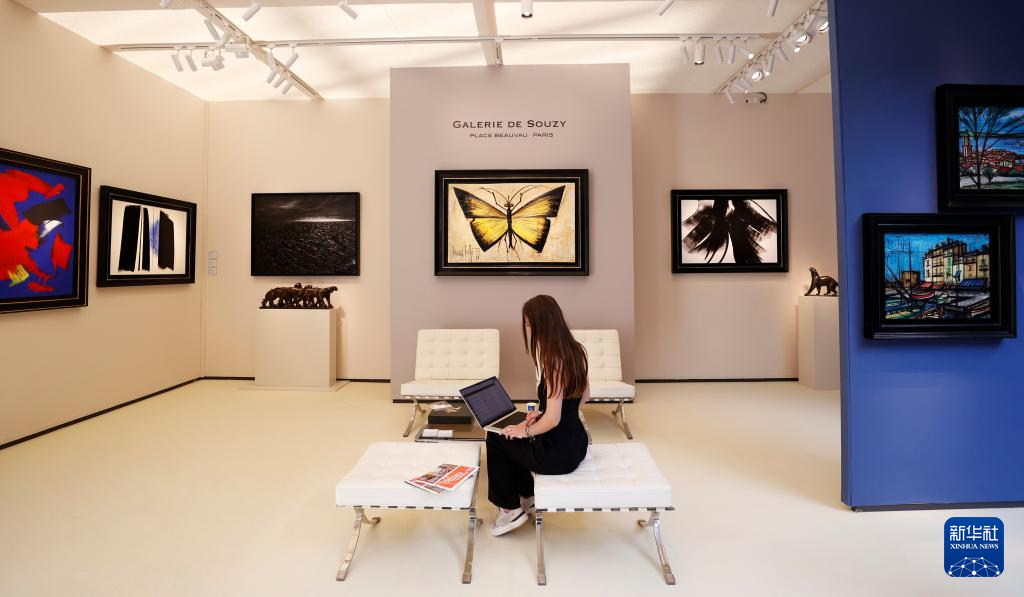 9月19日,在法国巴黎大皇宫,一名工作人员在第四届巴黎FAB美术与古董艺博会(FAB Paris)媒体预展上。