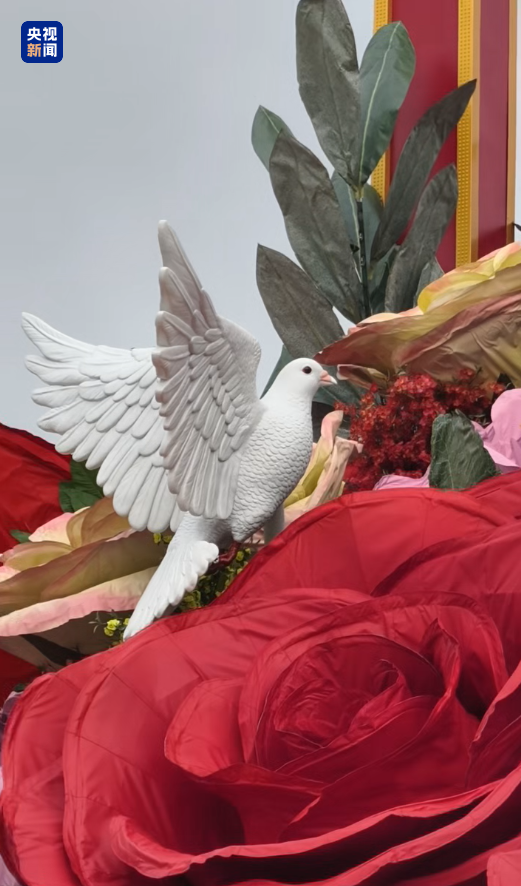 据相关负责人介绍,中心花坛大花篮,不断创新大型花艺造型和工艺,首次采用市花月季作为焦点花,并且加大新型花(叶)植物的应用,选用了鸢尾、翠菊、珙桐、橄榄枝等新型植物材料,并首次应用灵动动物造型——“会发光”的鸽子,形成新亮点。
