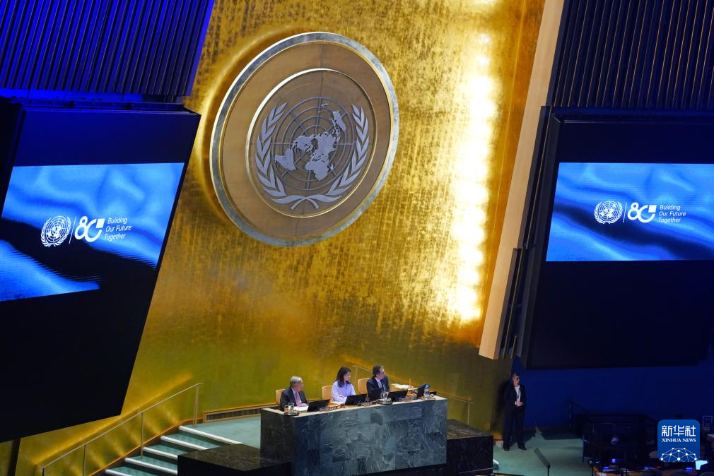 这是9月22日在位于纽约的联合国总部拍摄的纪念联合国成立80周年高级别会议现场。