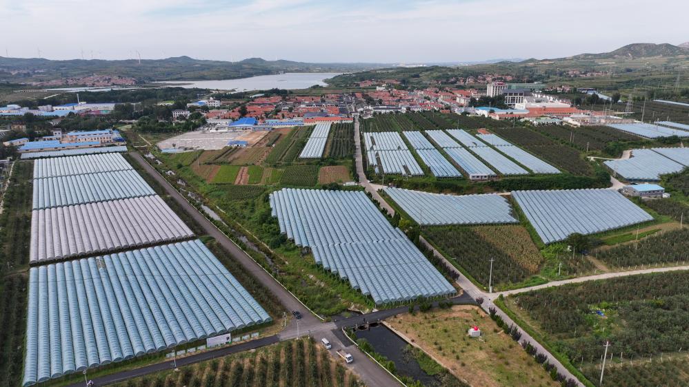 9月21日无人机航拍的山东省招远市大户陈家村葡萄种植园。新华社记者 徐速绘 摄
