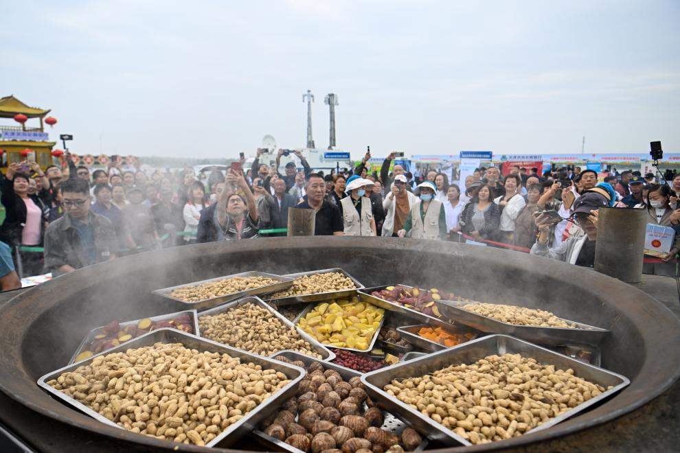 在“蒸蒸日上”展区,一口直径2米多的大铁锅热气腾腾。“11点准时起锅!”北辰区农业农村委员会副主任张立波告诉记者,这个展区主要是把天津的一些精品农产品蒸熟之后分给市民,和大家一起分享丰收的喜悦。“甜,特别甜!”不少市民结伴来到现场品尝丰收的味道。