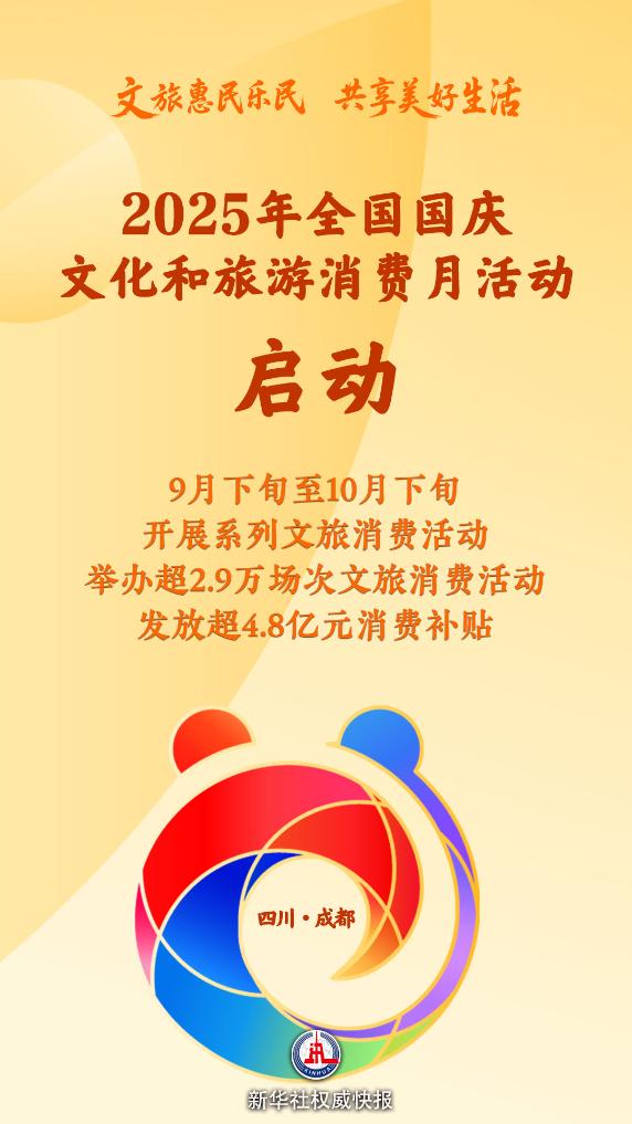 9月25日,2025年全国国庆文化和旅游消费月主场活动在四川省成都市举办,正式启动国庆文旅消费月,于9月下旬至10月下旬开展系列文旅消费活动,激发假日消费活力,满足人民美好生活需要。