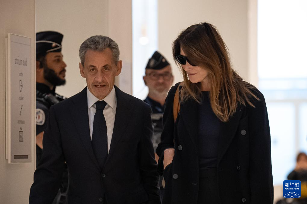9月25日,法国前总统萨科齐和夫人布吕尼抵达巴黎一家法院。
