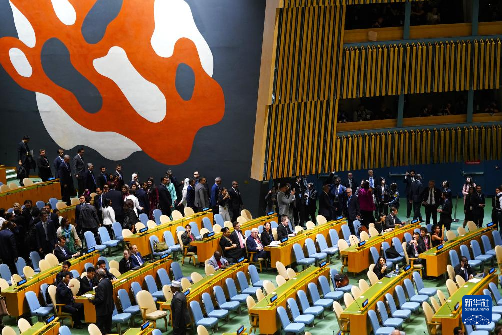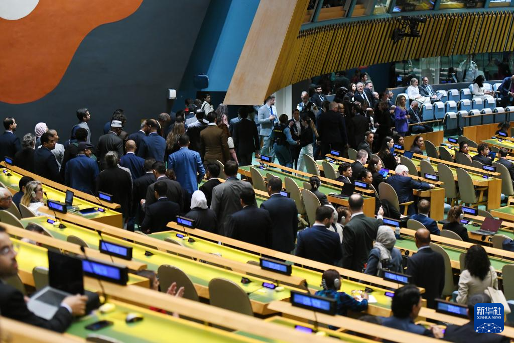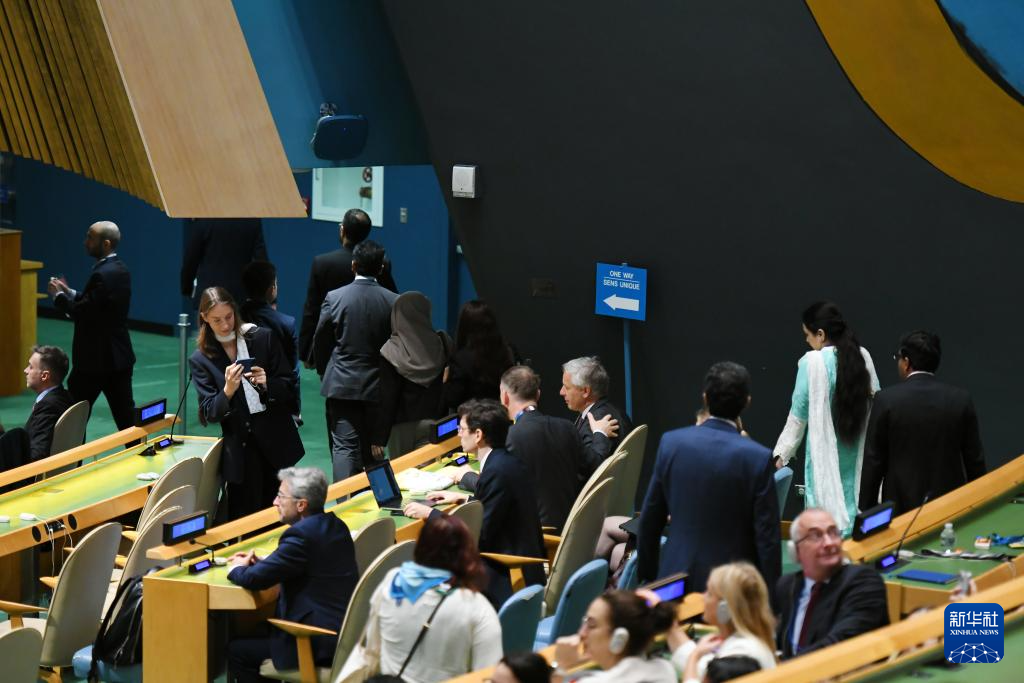 9月26日,在位于纽约的联合国总部,众多代表退场抗议。当日,以色列总理内塔尼亚胡在第80届联合国大会一般性辩论发言。众多联合国会员国代表起身离席,退场抗议。新华社记者吴晓凌摄
