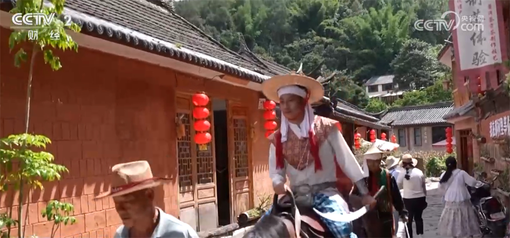 在宁洱那柯里茶马古道小镇,不少游客行走其间,挑选特产、品尝美食、体验马帮文化。