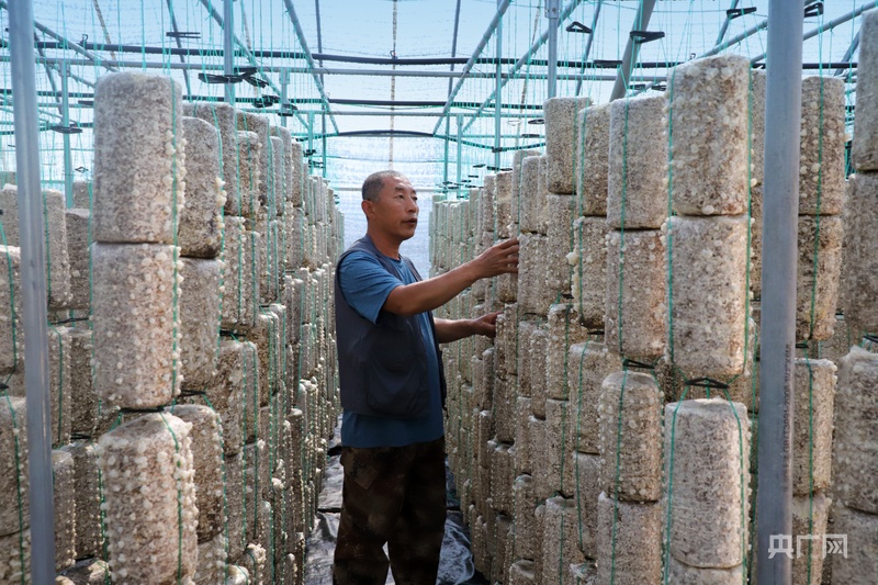 种植户正检查白木耳的长势(央广网记者 张晋鹏 摄)