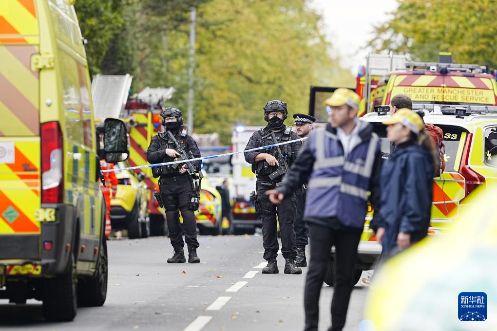 10月2日,警察和应急人员在英国曼彻斯特的犹太教堂袭击事件现场工作。新华社发