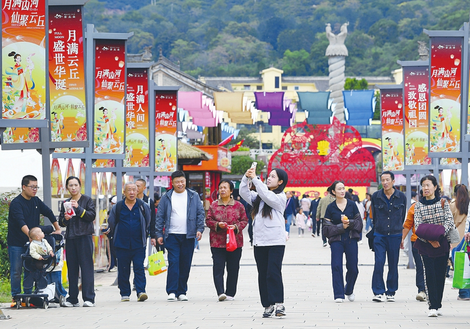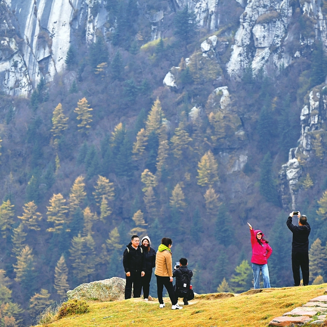 10月2日,游客在乡宁云丘山景区游玩。节日期间,景区推出多种特色活动,众多游客流连其中,尽享假期时光。李虎威摄