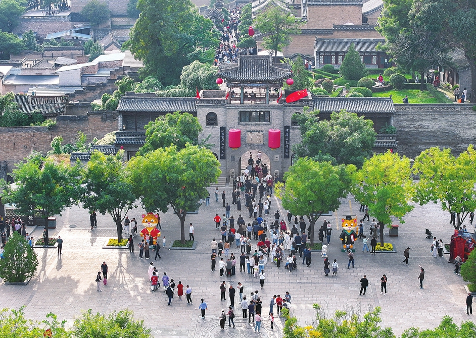 10月3日,游客在灵石县王家大院景区游览,领略传统建筑之美,感悟晋商文化底蕴。梁生仁摄