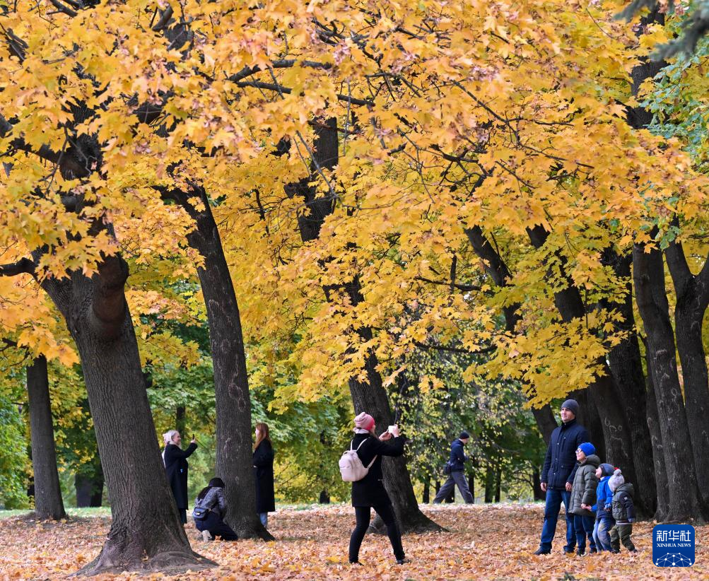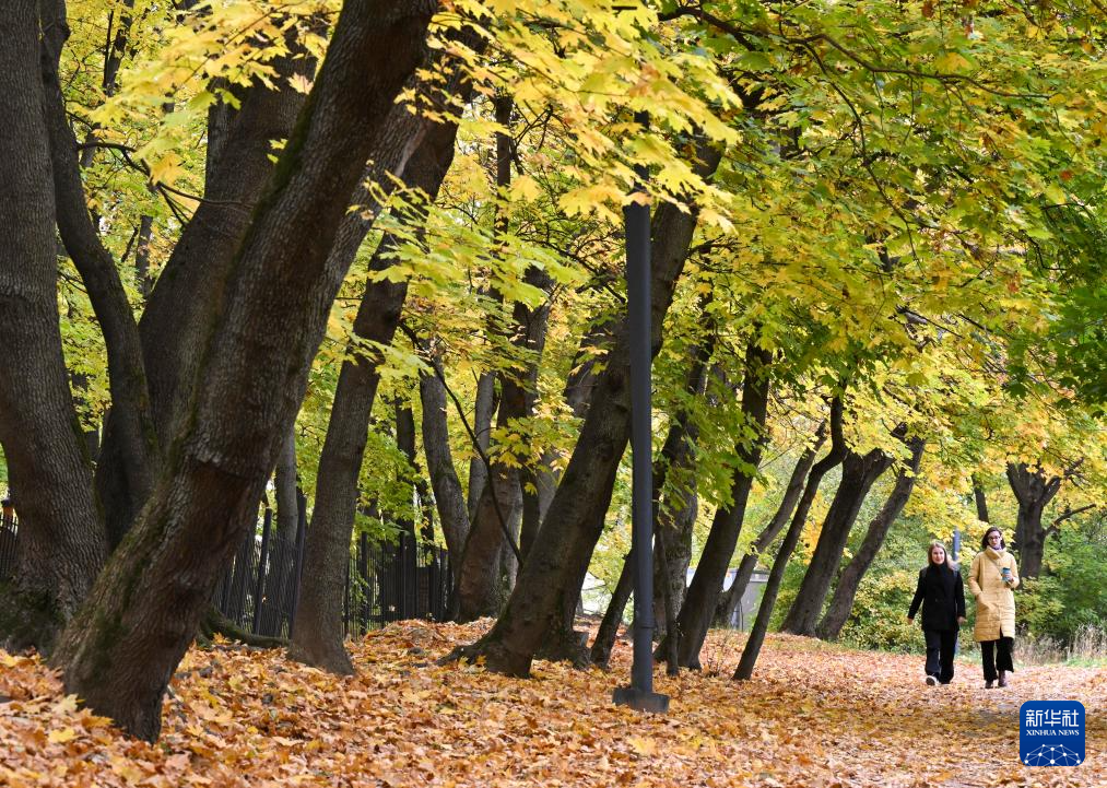 10月5日,人们在俄罗斯首都莫斯科的科罗缅斯克庄园赏秋。