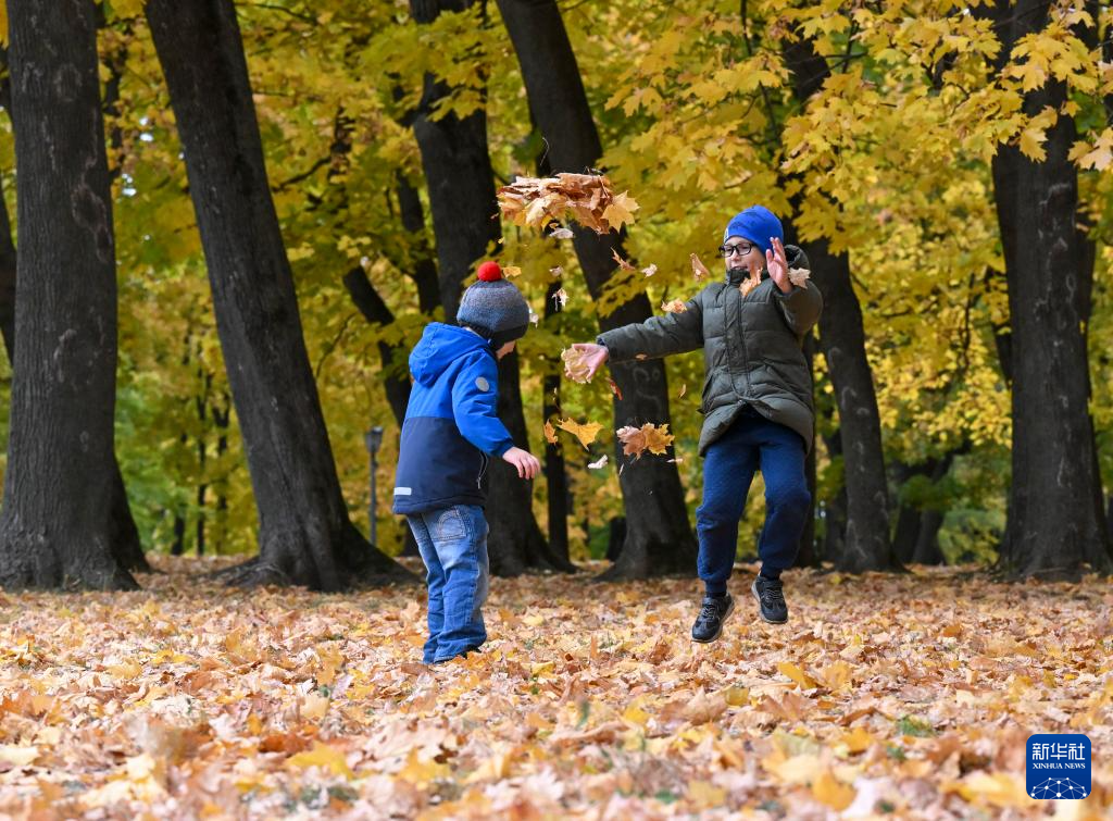 10月5日,小朋友在俄罗斯首都莫斯科的科罗缅斯克庄园玩耍。