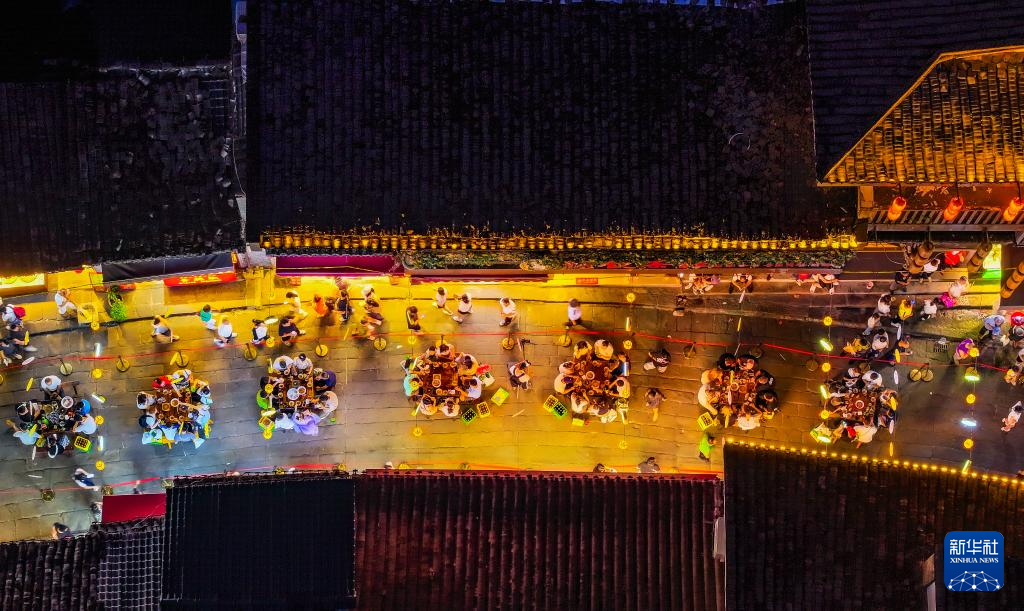 这是10月5日拍摄的重庆磁器口古镇长街宴活动现场(无人机照片)。