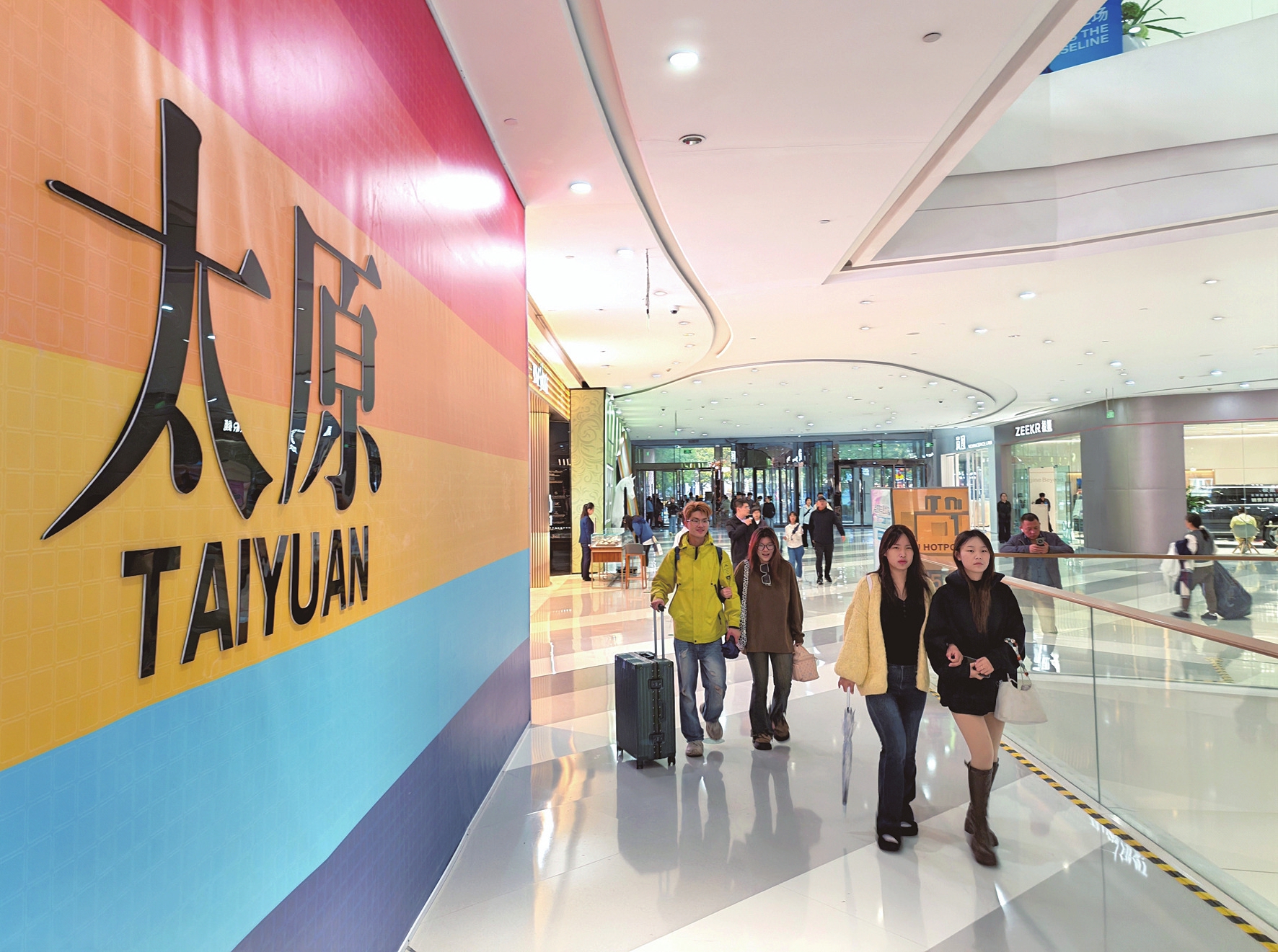 10月8日,省城小店区一大型商业综合体内,市民、游客正在休闲购物。国庆中秋假期,省城各大商圈推出各种促销活动,节日消费市场持续火热。