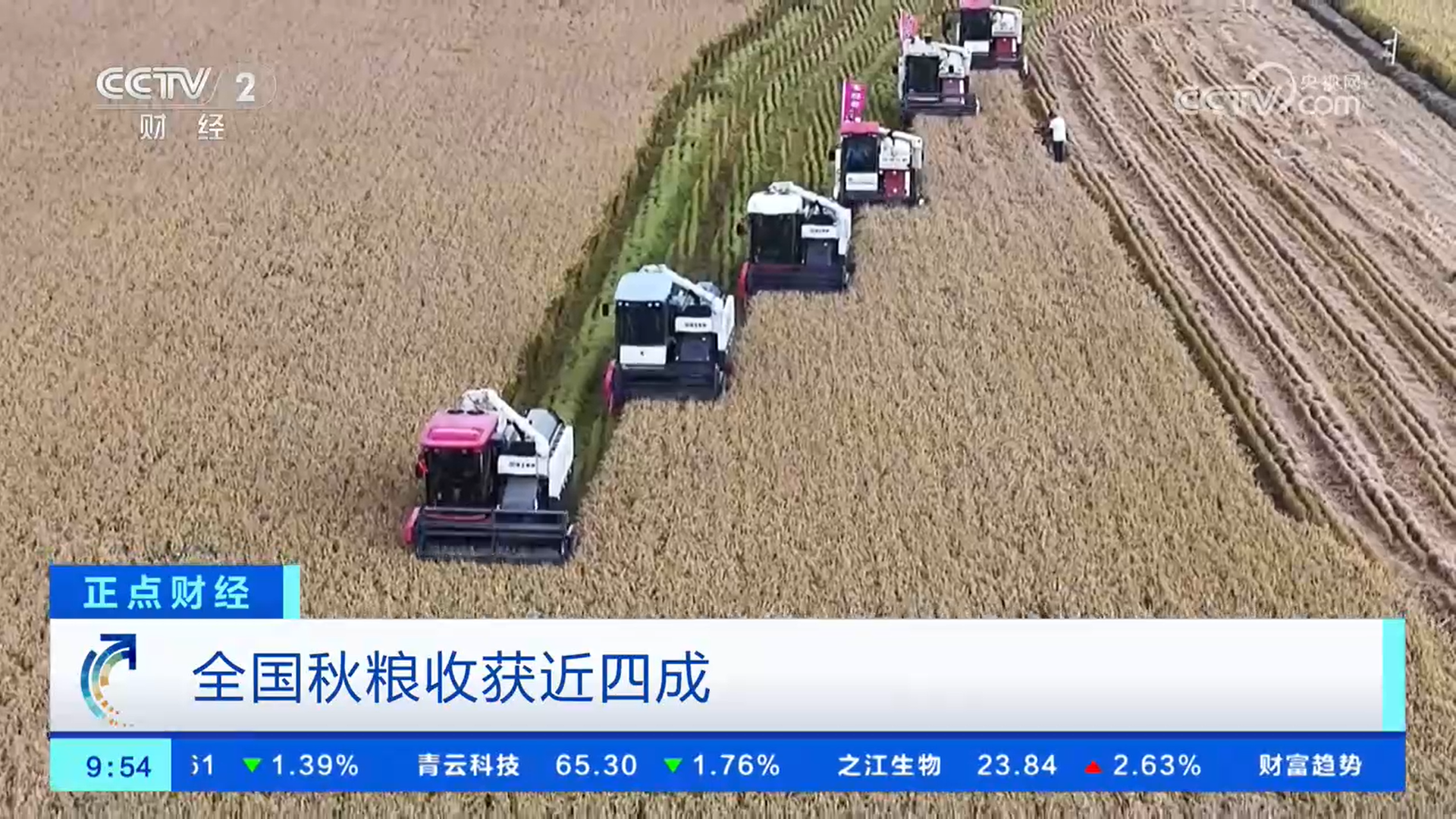 央视网消息:农业农村部最新农情调度显示,全国秋粮收获近四成,各粮食主产区陆续进入收获高峰期。