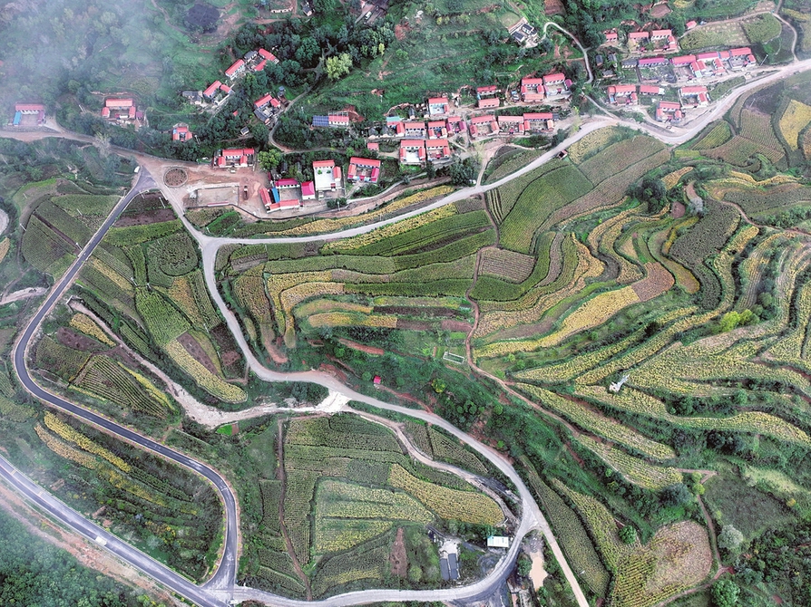 10月10日,武乡县山间云雾缭绕,太行一号旅游公路如长龙般蜿蜒盘旋。公路串起的民居错落分布,与梯田、山林共同勾勒出一幅秋日乡间田园画卷。