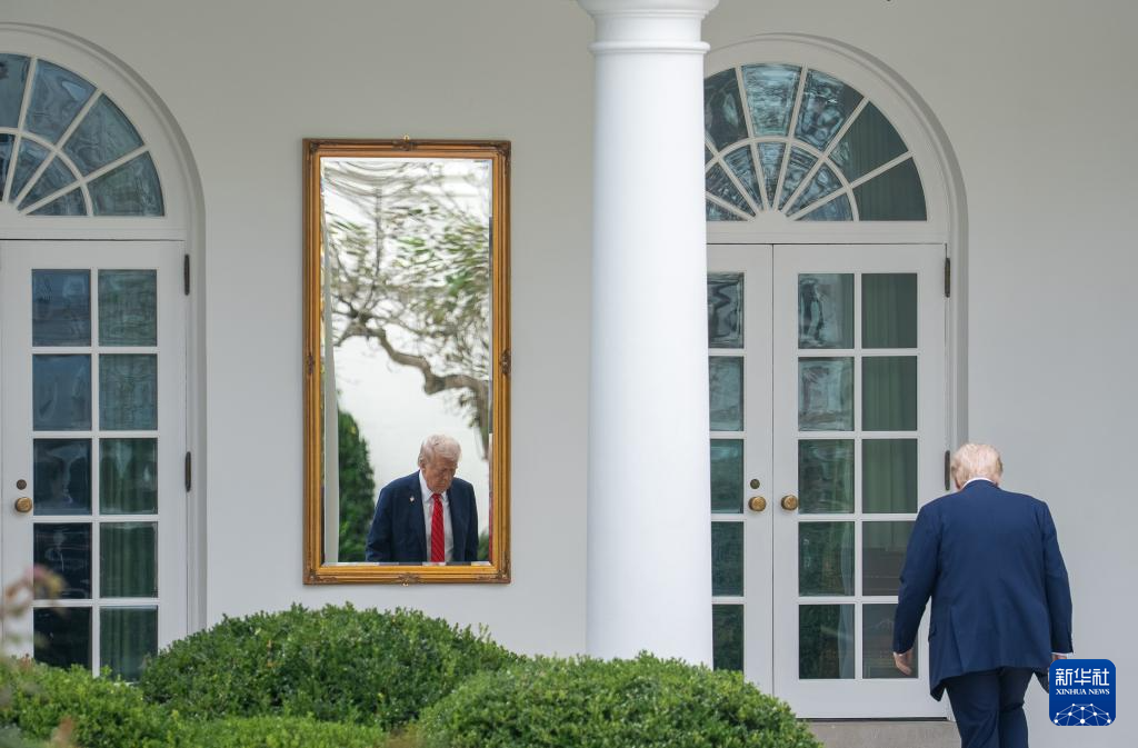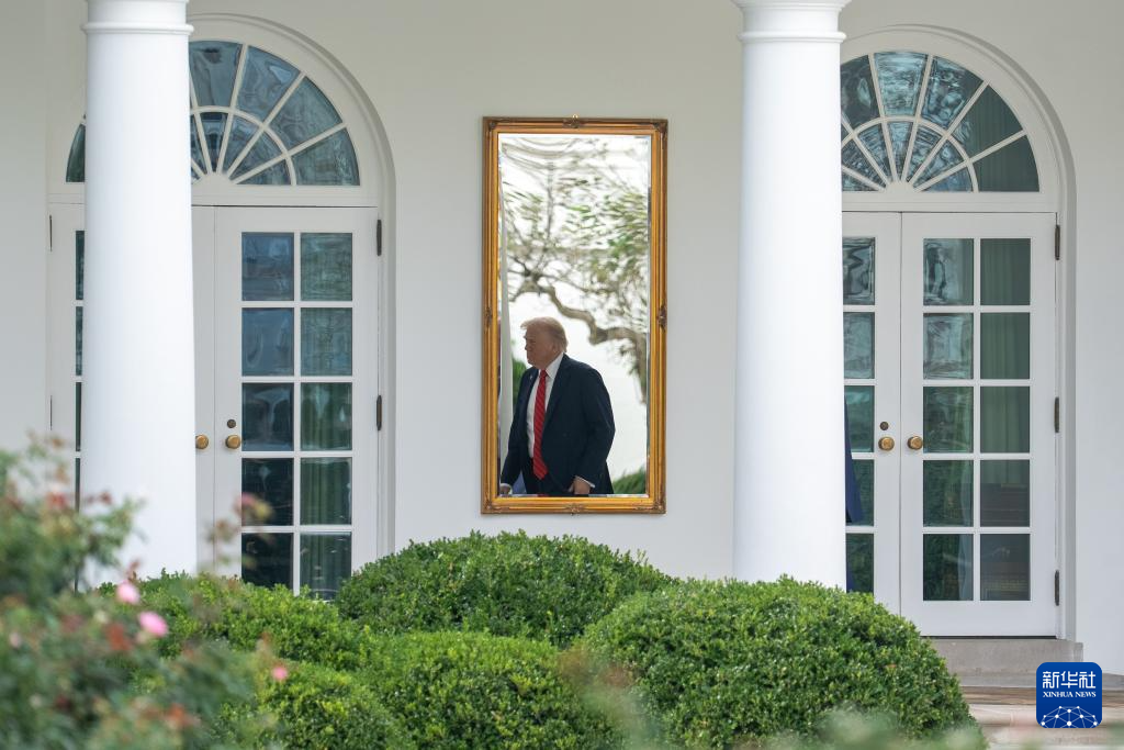 10月10日,在美国首都华盛顿,美国总统特朗普准备乘直升机离开白宫。新华社记者 胡友松 摄