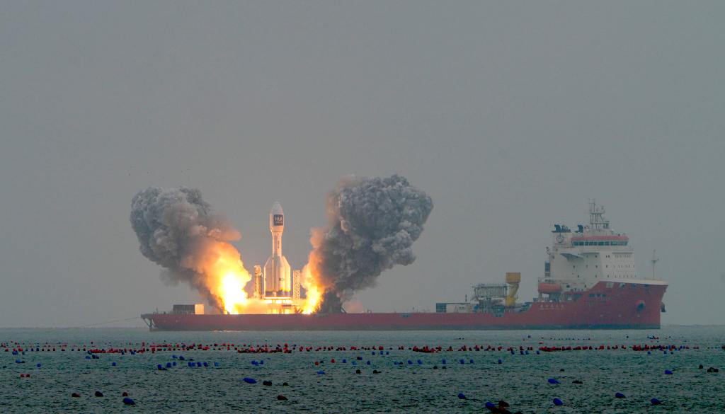 10月11日10时20分,我国太原卫星发射中心在山东海阳附近海域使用引力一号遥二运载火箭,将搭载的吉林一号宽幅02B07星、数天宇星01-02试验星顺利送入预定轨道,飞行试验任务获得圆满成功。新华社发(郭金祺 摄)