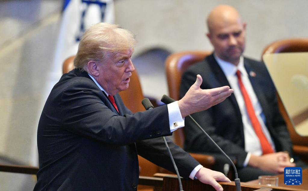 10月13日,美国总统特朗普在位于耶路撒冷的以色列议会发表演讲。新华社/基尼图片社