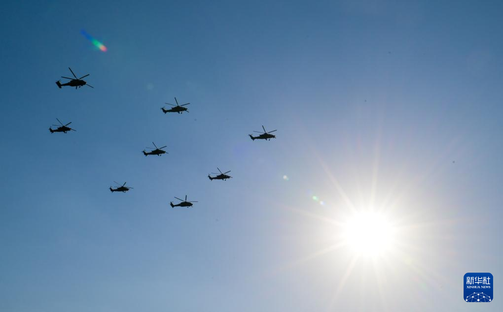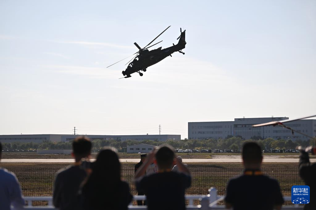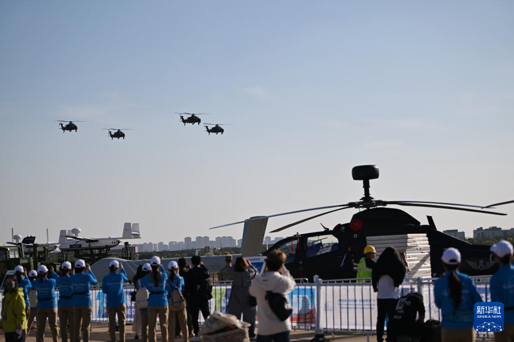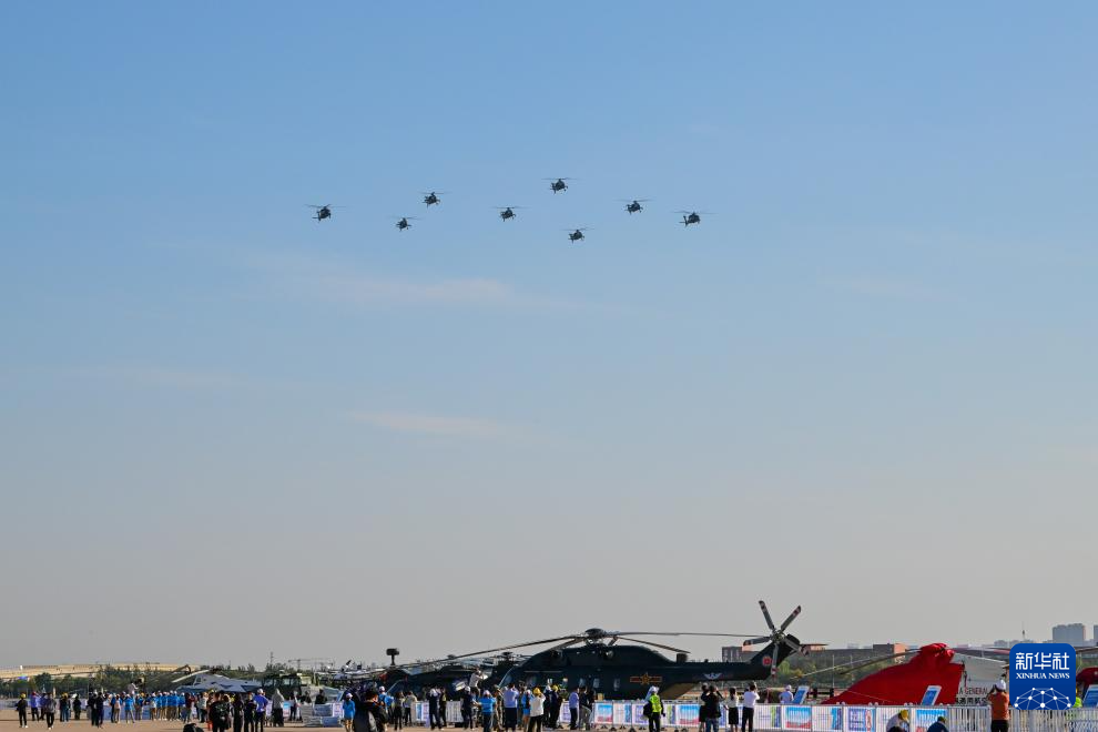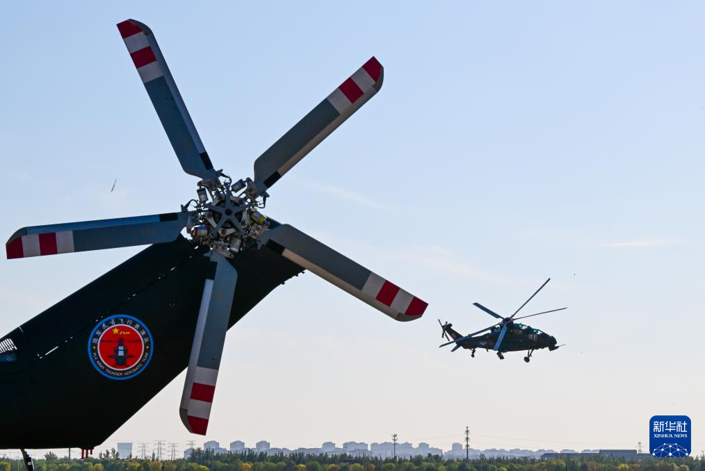 10月14日,参加飞行表演的直升机进行演练。新华社记者 孙凡越 摄