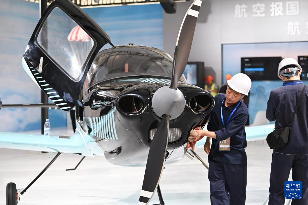 10月14日,工作人员在天津直博会低空经济馆内布展。新华社记者 李然 摄