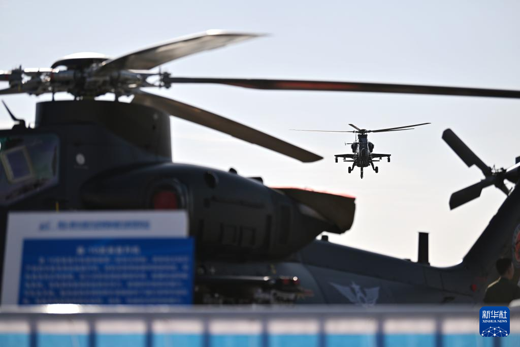 10月14日在天津直博会直升机馆内拍摄的直升机模型。新华社记者 孙凡越 摄