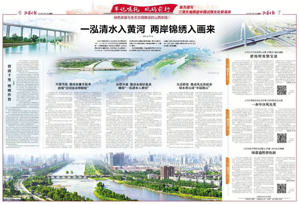 让汾河“水量丰起来、水质好起来、风光美起来”的嘱托与期待,为汾河的命运带来了历史性转机。“一泓清水入黄河”正是这一宏伟蓝图最凝练、最动人的表达,是三晋大地生态修复写入时代答卷的庄严承诺。