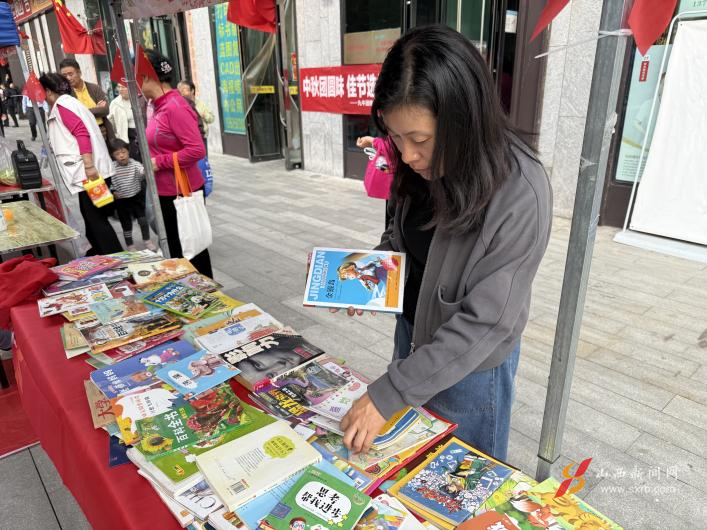 本次活动还特设了绿色公益环节。“旧衣换菜”摊位前,居民们拎着整理好的闲置衣物,有序兑换成一份份新鲜蔬菜;“闲置书籍自由交换区”则摆满了各类读物,大家静心翻阅、自由交换,在书香流转中共享阅读快乐。