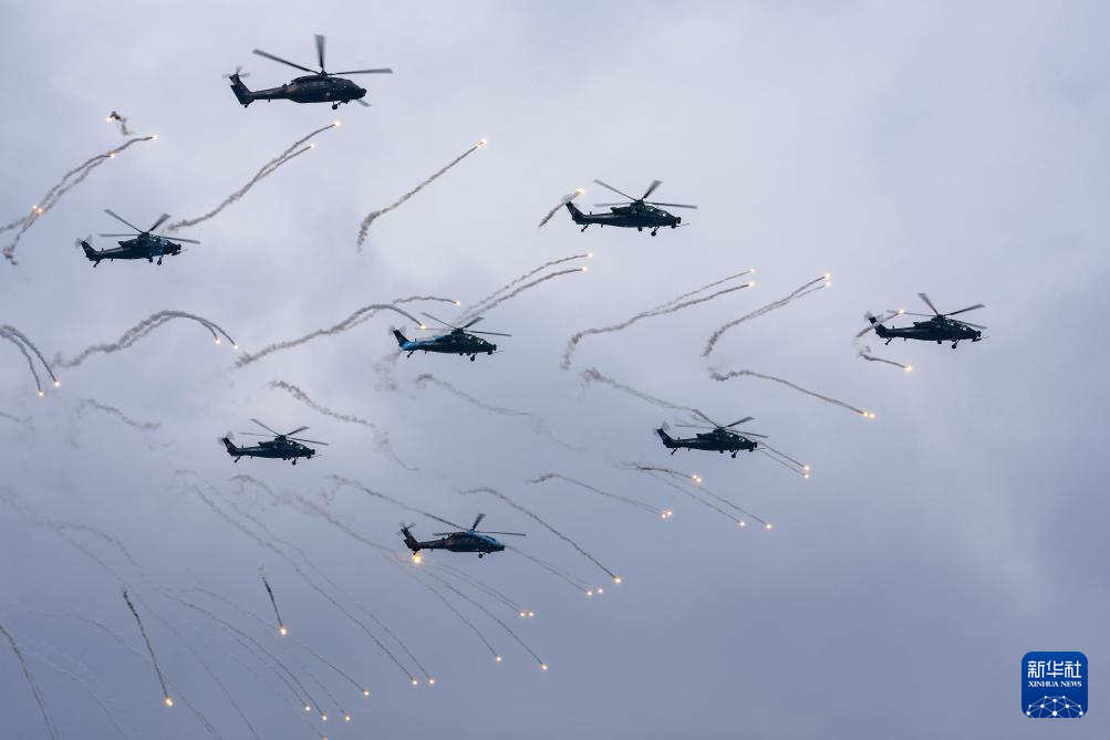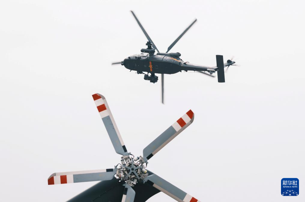 10月16日,在第七届中国天津国际直升机博览会开幕式上,陆军“风雷”飞行表演队进行飞行表演。新华社记者 张永进 摄