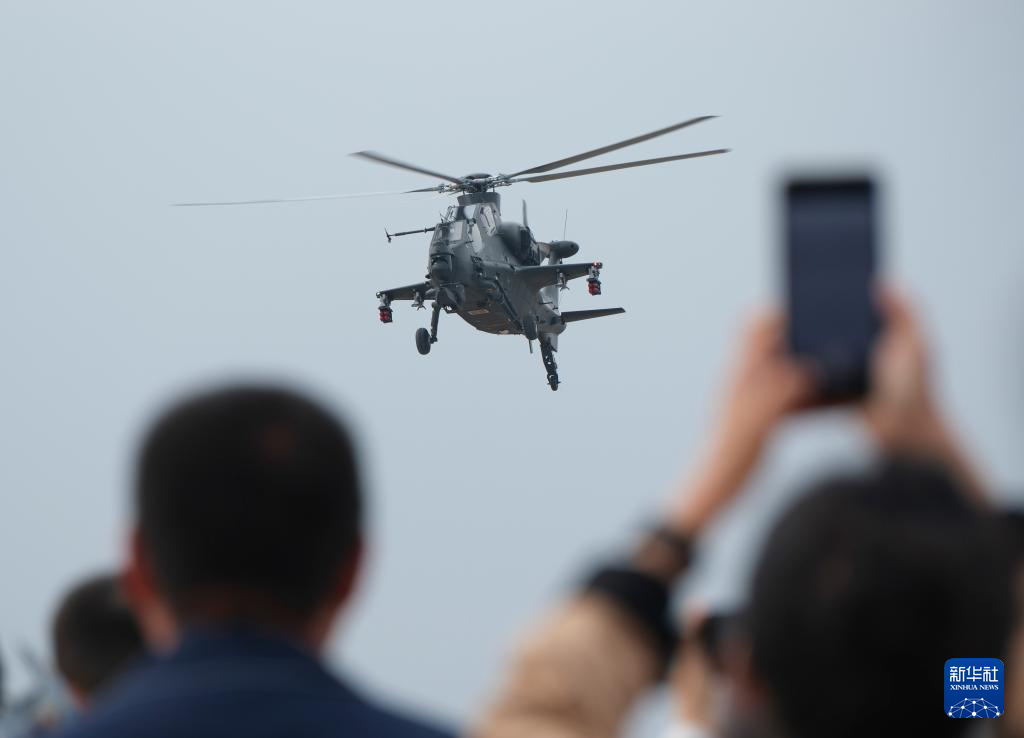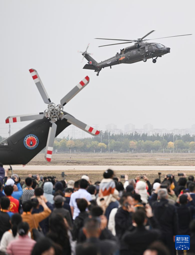 10月16日,在第七届中国天津国际直升机博览会开幕式上,观众观看装备静态展示。新华社记者 张永进 摄