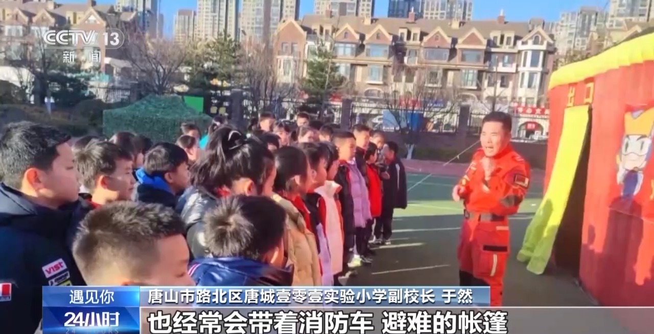唐山市路北区唐城壹零壹实验小学副校长 于然:消防大队、应急局也经常会带着消防车、避难的帐篷,来到校园里边,然后模拟着火了的烟雾,组织学生在安全屋里边怎么样有序地逃脱。我们希望跟社会教育、家庭教育相结合,在这些场景里边锻炼孩子真正的实际应用能力。