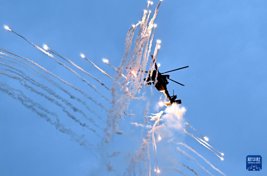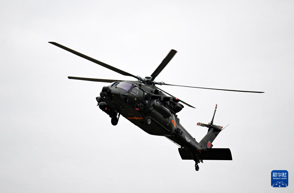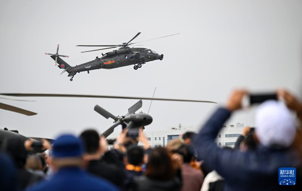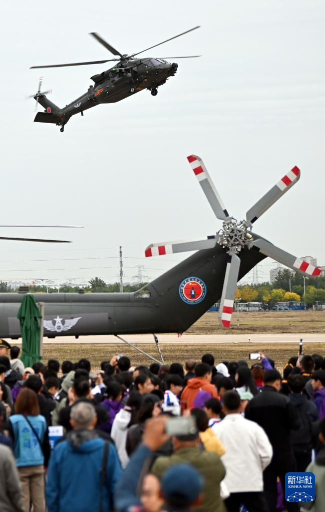 10月16日,直-20T直升机在进行飞行表演。新华社记者 赵子硕 摄