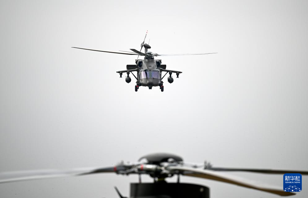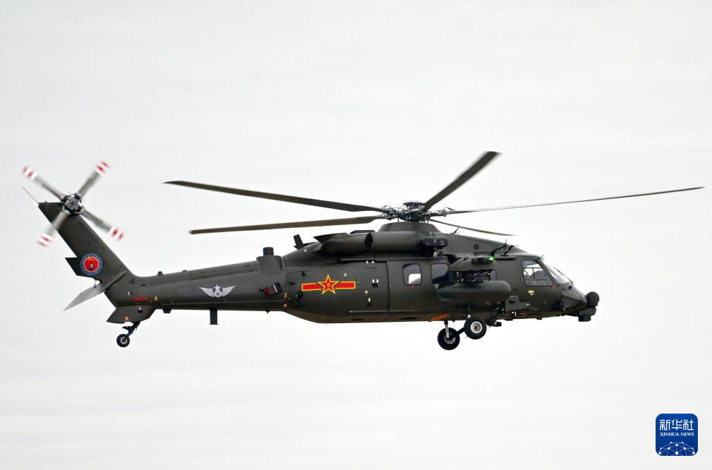 10月17日,直-20T直升机在进行飞行表演。新华社记者 赵子硕 摄