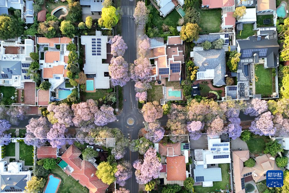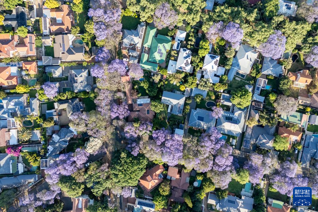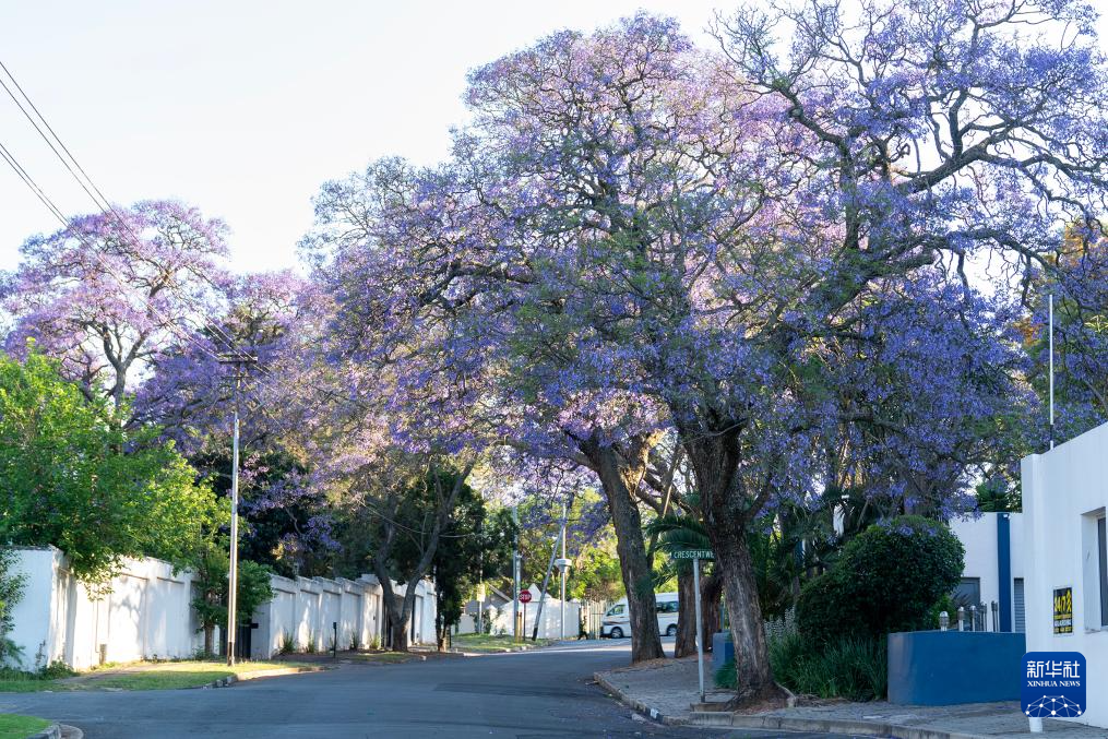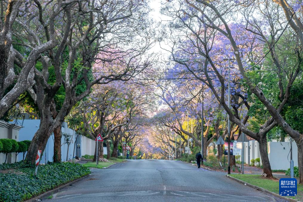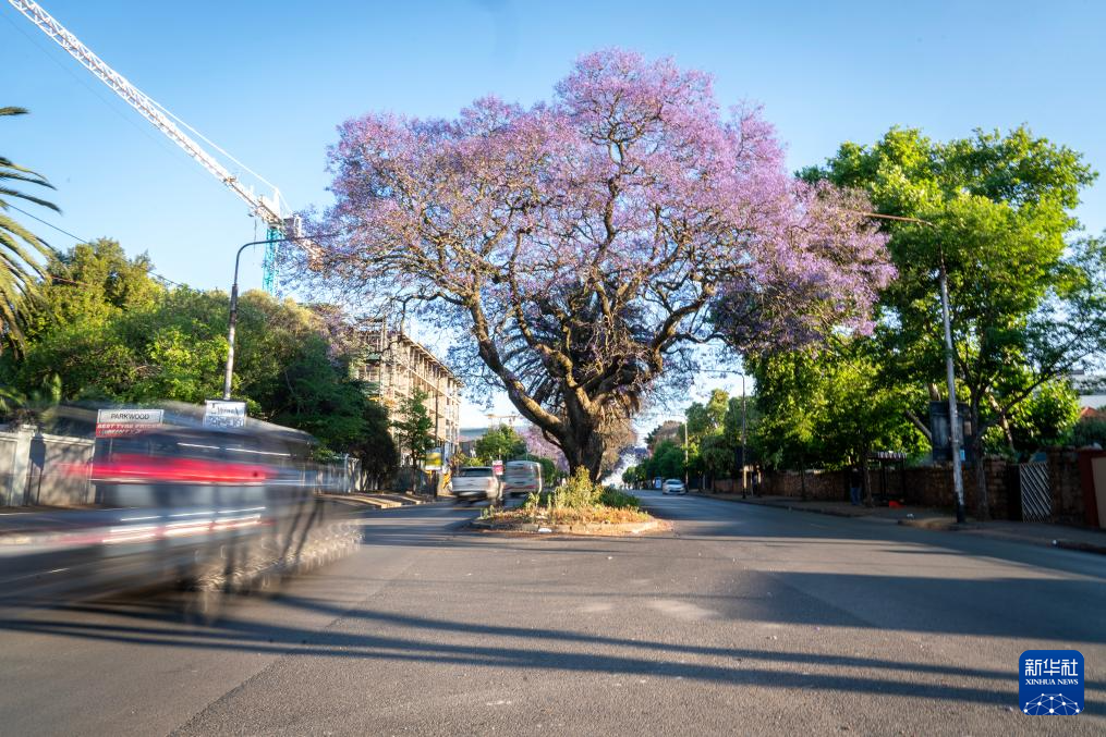每年的10月中旬至11月上旬,南非约翰内斯堡随处可见盛开的蓝花楹。