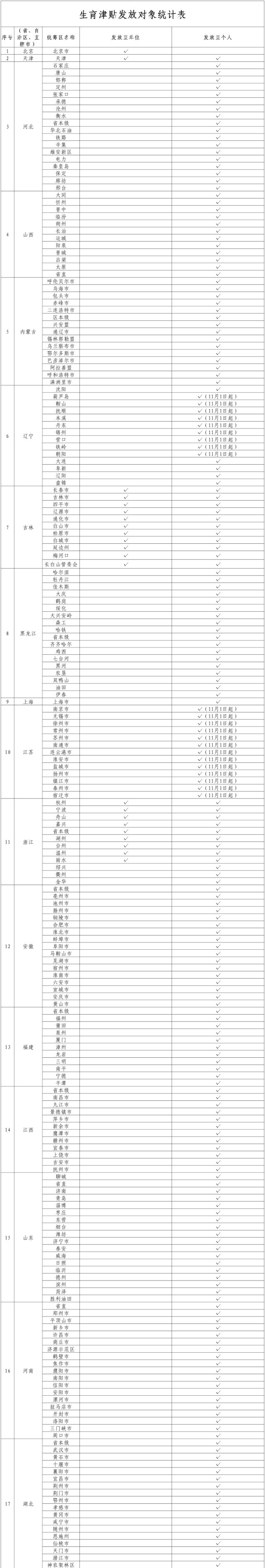 各统筹区生育津贴发放的具体情况,请参见下表。