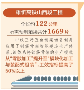 雄忻高铁正线全长约342公里,其中山西段工程约122公里,所需预制箱梁共计1669片。中铁三局管段全长31.15公里,设有2座梁场,承担647孔箱梁的预制任务,五台制梁场负责其中341孔箱梁的预制工作。