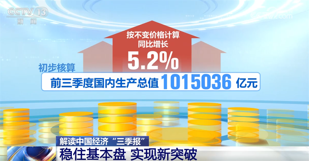 今年以来,国际环境复杂多变,外部冲击影响加大,而中国经济首先要做到的就是“稳”。初步核算,前三季度国内生产总值1015036亿元,按不变价格计算,同比增长5.2%。